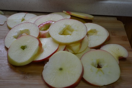 - Cut the apples into round slices and remove the cores out of them