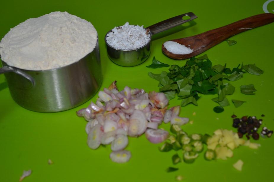 • In a small pan with oil, saute the shallots, green chili, ginger, curry leaves and black pepper for 2 minutes