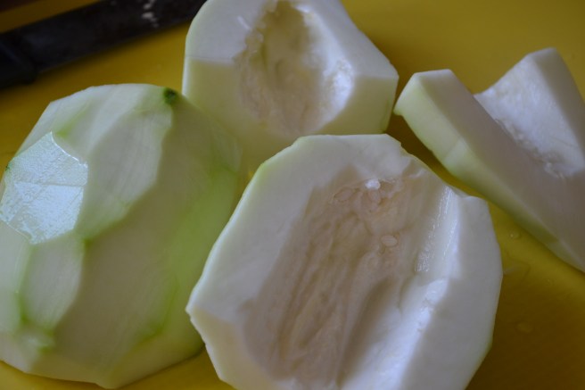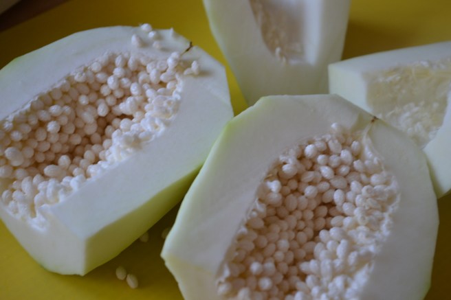 - Peel the skin from the papaya, cut it into 4 pieces and remove all the seeds