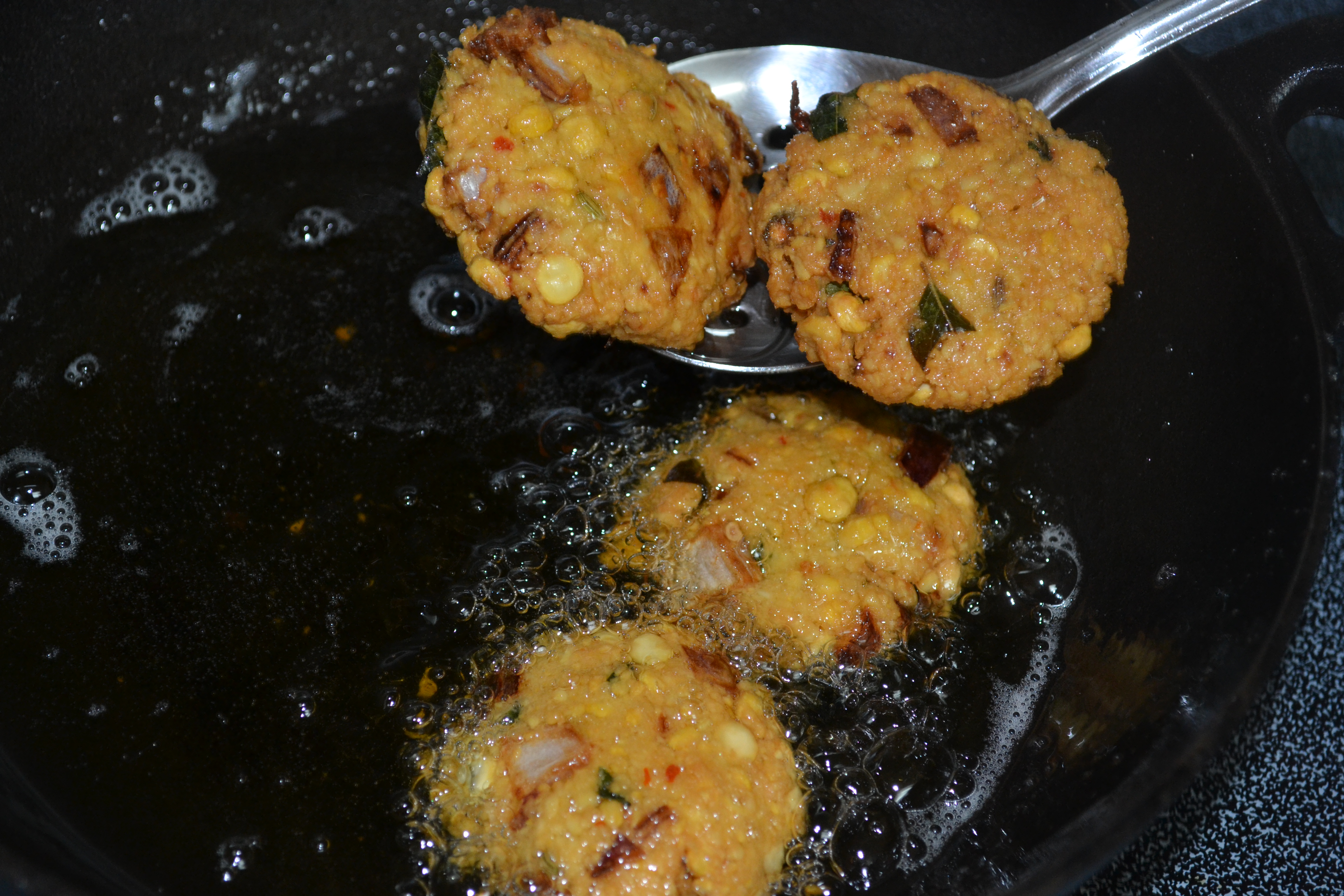 You can find this snack in every small tea shop in our hometown. In the evening, people will gather after their work to sit in front of the tea shop on a bench, to discuss local/global news and gossips. Paruppu vadai is one of the popular snacks goes well with the cup of hot tea. Also, if unexpected guests happen to arrive at home, it is handy to run to the nearby tea shop and get some paruppu vadais for the guests. Usually, these shops will wrap it in fresh banana leaf and give.