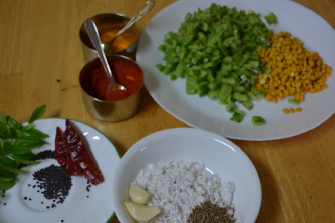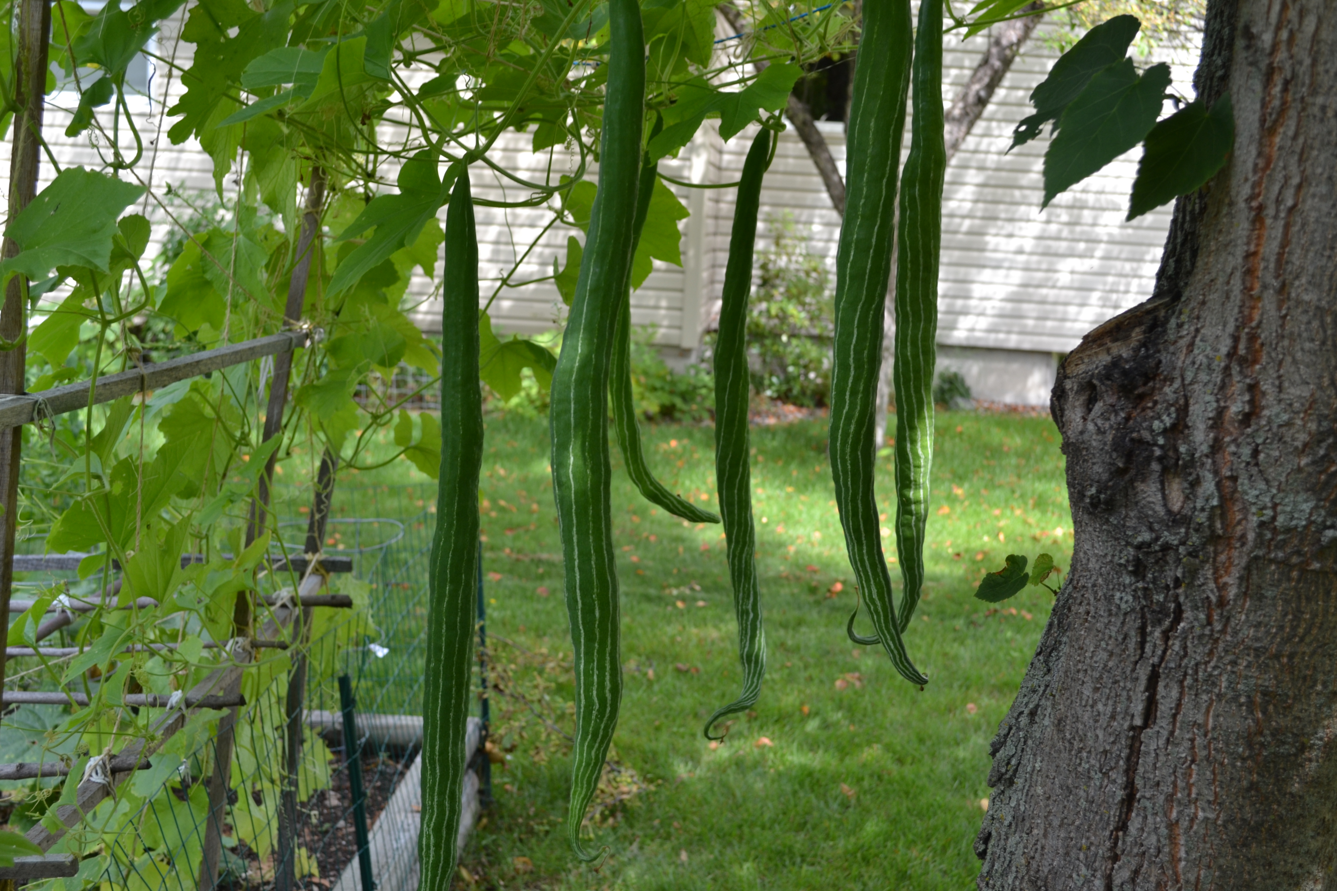 Snake gourd is a very common vegetable in India. Two years ago we planted few snake gourd plants in our backyard garden and we got a good yield. Below is the picture of it. Last year also we planted, but the plants didn’t grow well. In the Asian grocery stores and farmer’s market, we get many varieties of snake gourd. I make different kinds of dishes using the snake gourd. Today, I am making a simple dish with snake guard and split chickpea.