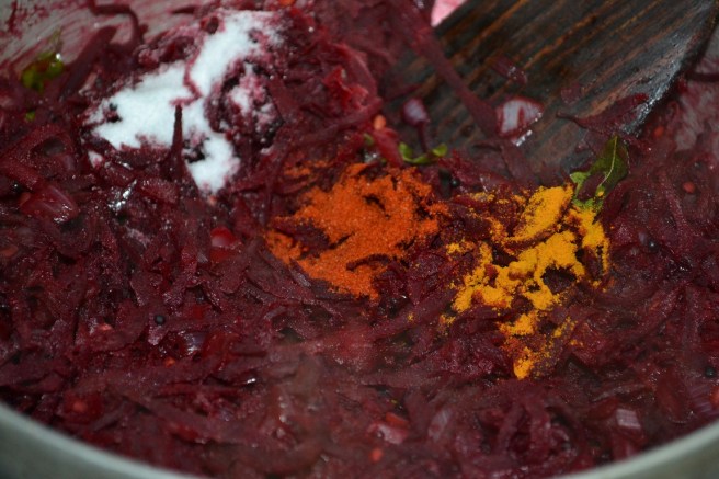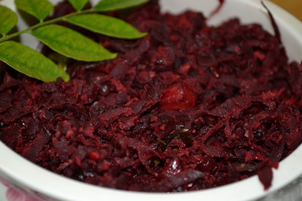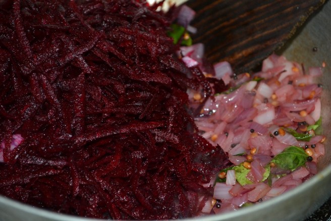 This is one of my favorite poriyals. Very easy to make in short time. I always have few beets in our fridge and it comes in handy for a last minute side dish for rice.