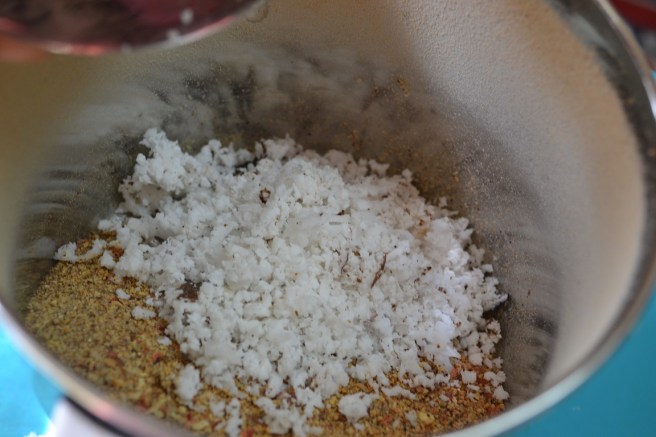 - Then add the grated coconut and water to it and grind well (add the water little by little)