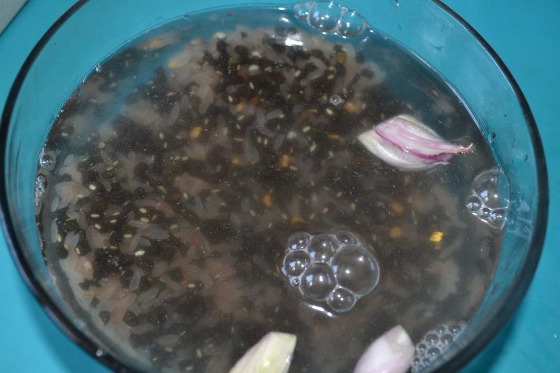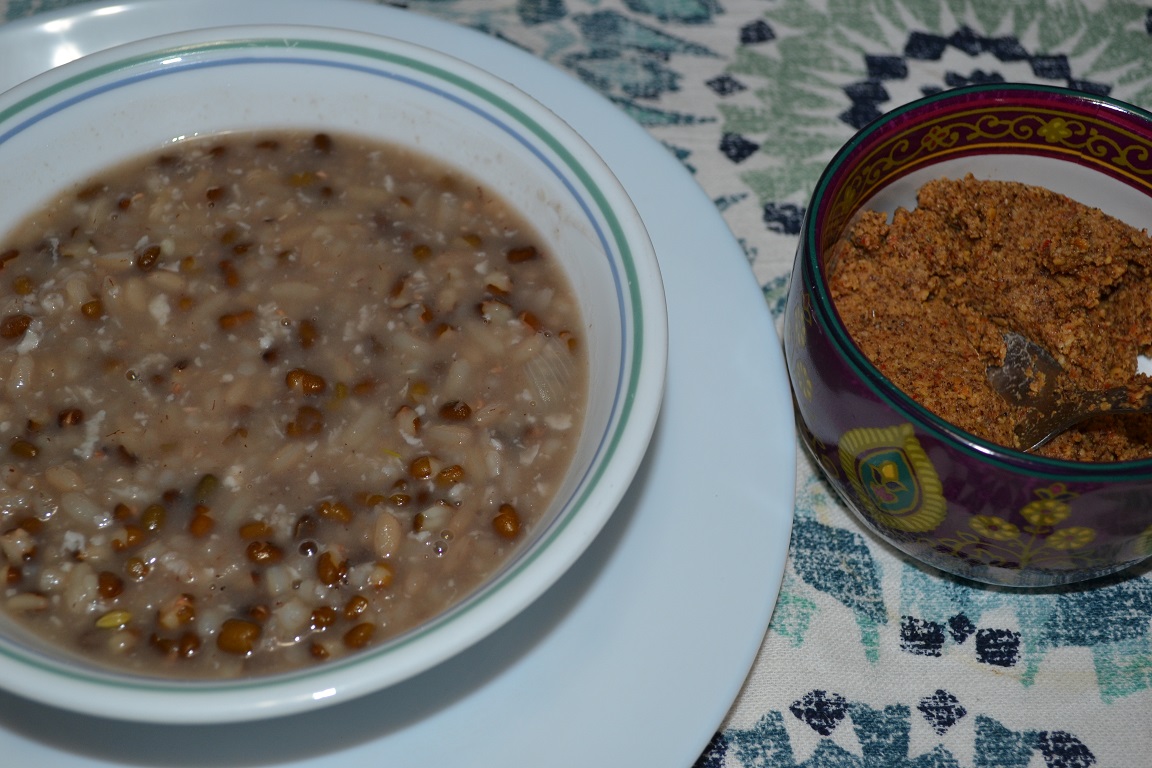Conjee is a well known traditional dish in our hometown. It can be made with rice alone or with a lentil, mostly black gram or green gram. Today I am making with black gram. Rice and black gram are cooked together with water and seasoned with fresh grated coconut at the end. The common side dishes for the conjee are coconut thuvaiyal, horse gram thuvaiyal or some spicy pickle.