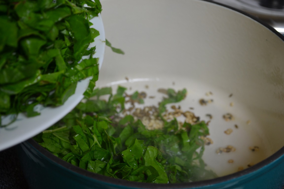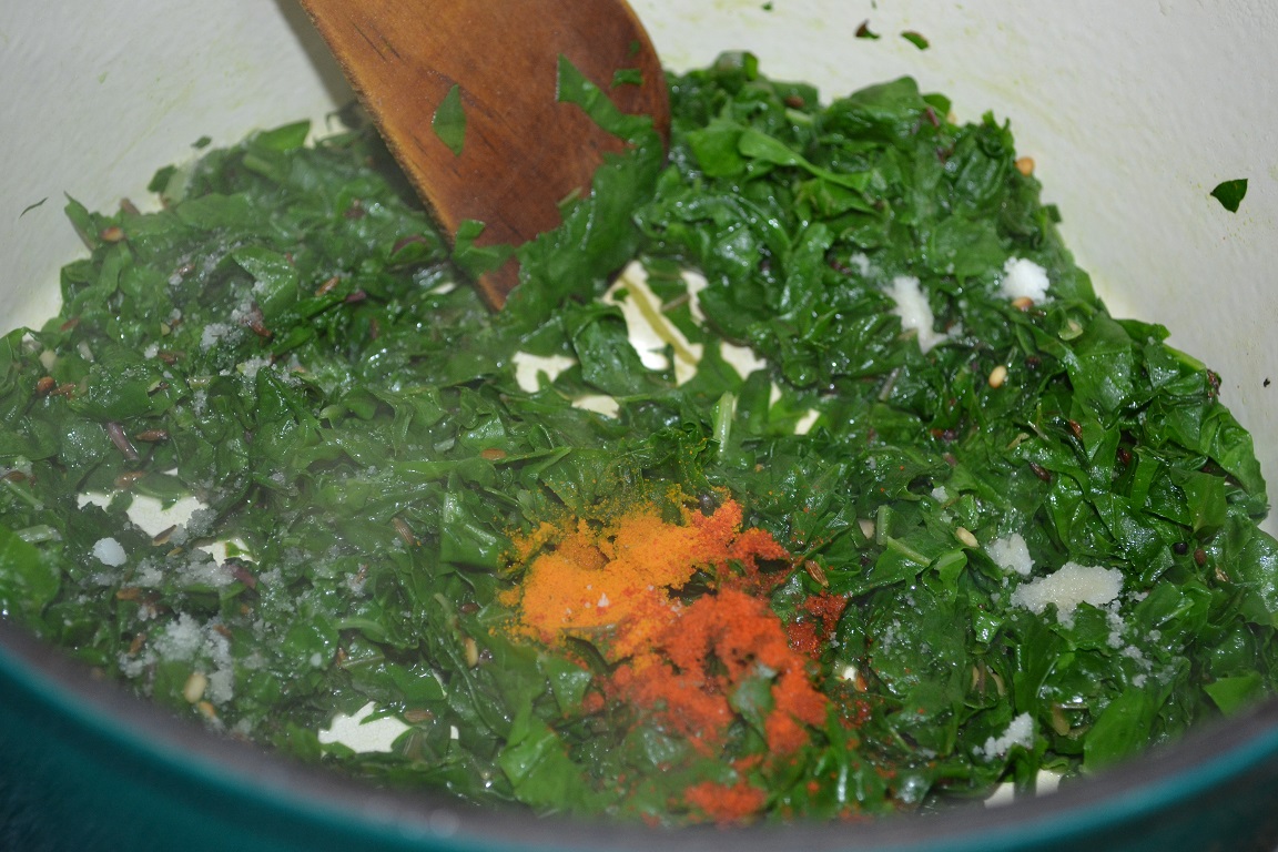 Note: Swiss chard needs less salt, so add less salt than the other spinach recipes. Also the overall cooking time will take only around 5 minutes.