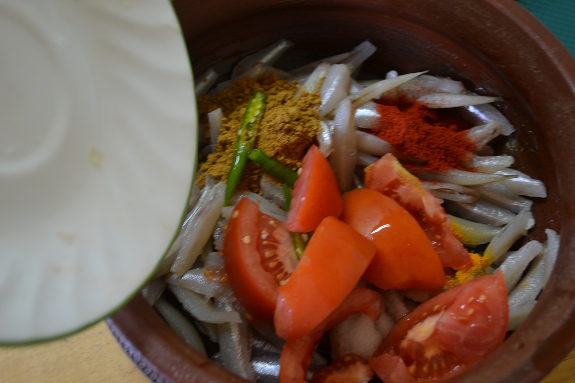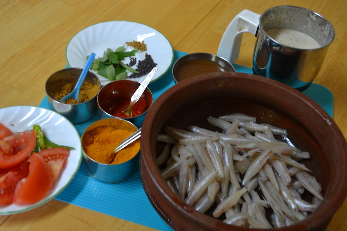 Anchovies are one of the most common fishes we get in our hometown. Many people like the taste of this fish curry. Anchovies have small bones in the middle, which can be easily removed while eating, in the small size fishes, you don’t even need to remove them. I bought these anchovies from a nearby Indian grocery store. I already posted a recipe for fish curry a while ago, but this one is little bit different…