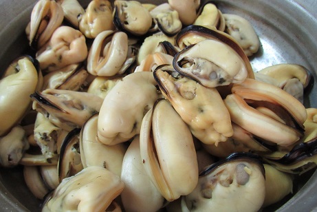 - Now split the mussel shells and take out the flesh