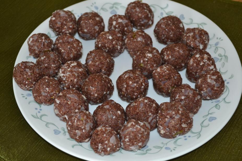 - Then take small amounts of the cooked ragi rawa and shape them into balls and enjoy!