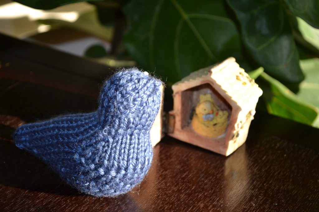 Onetime I saw a bluebird in our backyard, that was the first time I have seen a bluebird, which was absolutely beautiful. Then I was browsing for bluebird images and saw the knitted bluebird, so just for fun, from my stash yarns, made these bluebirds. The pattern is here. It is quick and fun to make. The pattern says to use double pointed needles, but I knitted these using magic loop. In both ways it works great!
