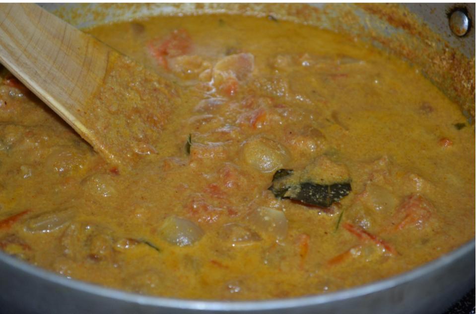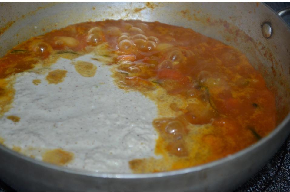 - Now add the coconut paste and continue to cook for 5 more minutes