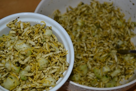 This is a popular Indian street food, but you can make this savory bhelpuri masala in few minutes at your home. There are a lot of ready made chutneys available in the stores, but mostly I try to make myself to avoid the preservatives. Most of the time, I will have the mint and cilantro cubes in our refrigerator, so whenever we want to eat something savory, we can make it quickly.