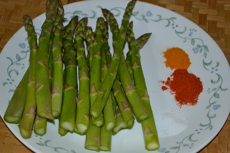 - Marinate the asparagus with chili powder, turmeric powder, salt and a tea spoon of oil