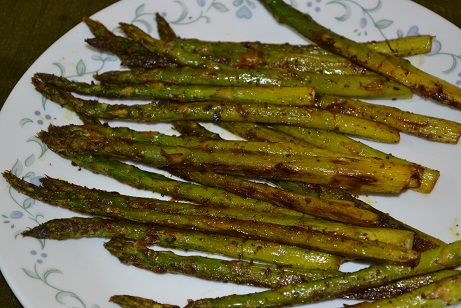 Below is the picture of roasted asparagus served with steel cut oats upma, tomato thokku(pickle) and boiled egg with salt and pepper.