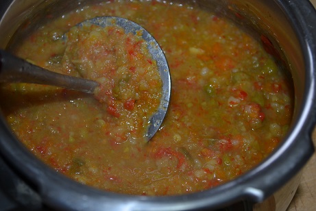 - Open the cooker and smash all the vegetables using a potato smasher and keep it aside