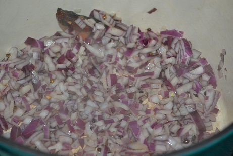 - Mince one onion into small pieces and dice the remaining 1/2 onion
