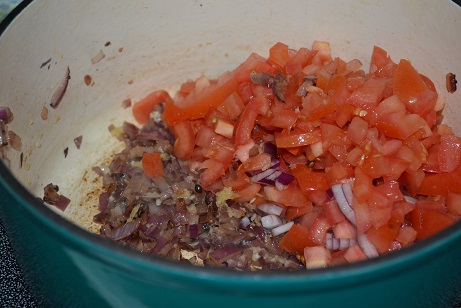 - Add the diced onion, diced peppers and cook for 5 more minutes