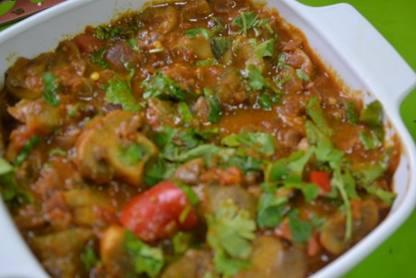 This is a very delicious side dish for chapati/roti. If you like mushroom you will definitely like this dish. This is a very colorful and flavorful recipe, when you get time give it a try.