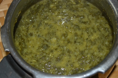 - Once it cools down, open the cooker and mash the cooked ingredients using a potato masher