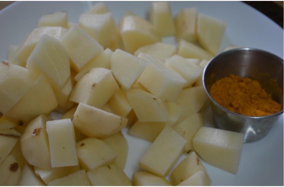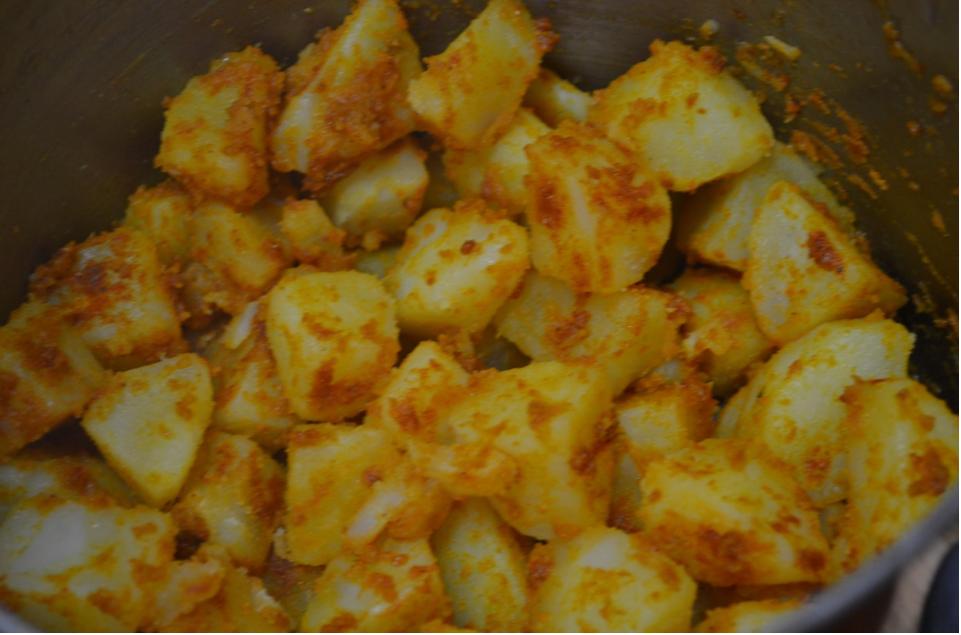 - Now add the potatoes and cook them until they become tender (don’t cook it thoroughly)