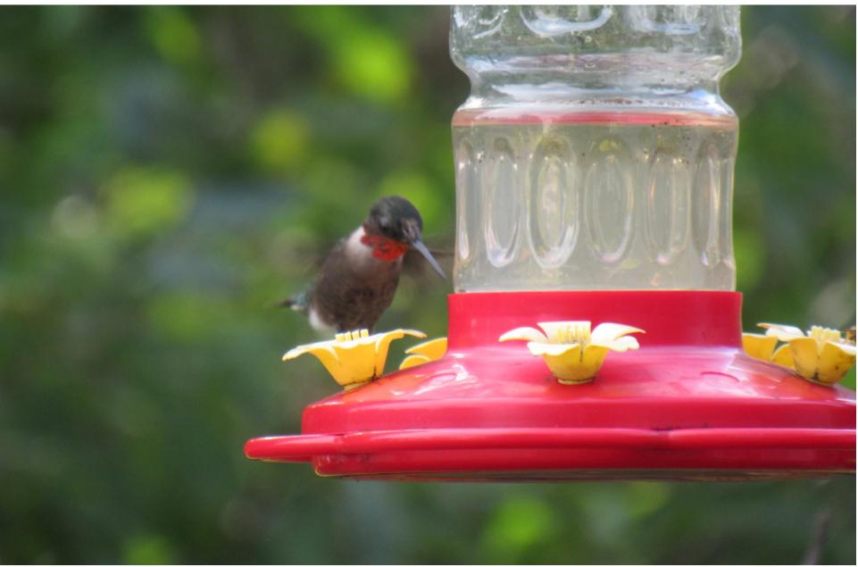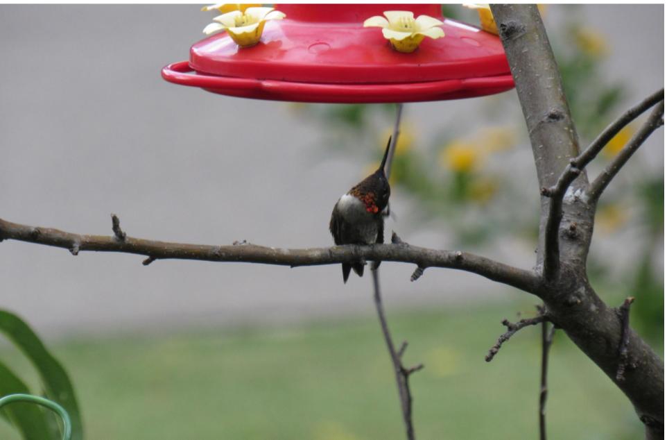 I was so excited when I saw him first. I haven’t seen a ruby throated hummingbird before. He is a new visitor to our garden and the feeder. Initially he was kind of wild, he won’t sit on the branches, just quickly drink and fly away. Then after few days he started sitting in the branches and look around. But he is little bossy with the other hummingbirds. I spent a lot of time watching his beauty and taking these beautiful pictures. One time I recorded a video too, but that time I was so excited and the video turned out too shaky.