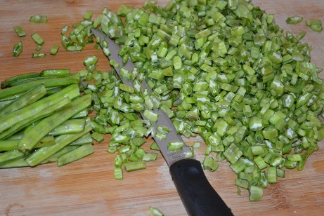 - Wash the cluster beans, snip off both ends and cut it into fine pieces