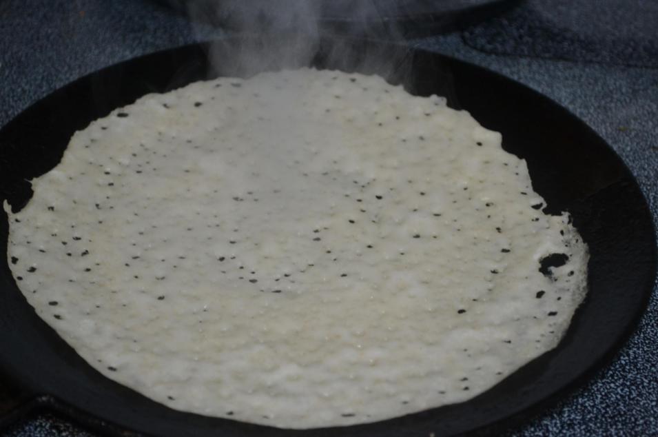 - Pour a ladle of batter and spread into circle