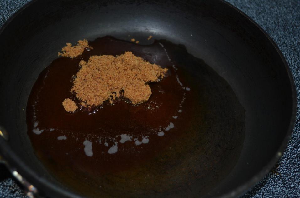 • Place a pan on medium heat, add the jaggery powder and two table spoon of water