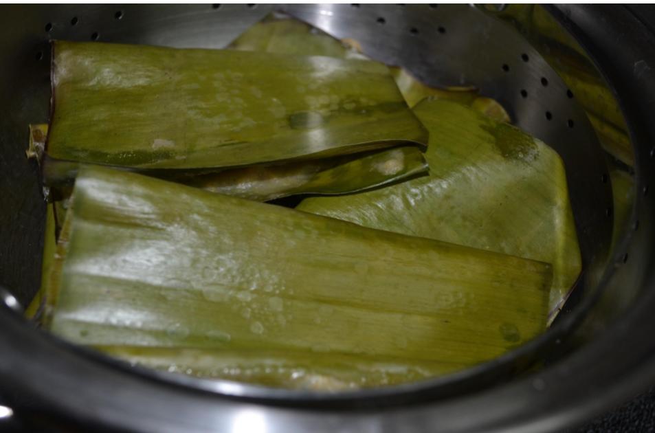 • This time I used fresh banana leaves, but you can use the frozen ones as well
