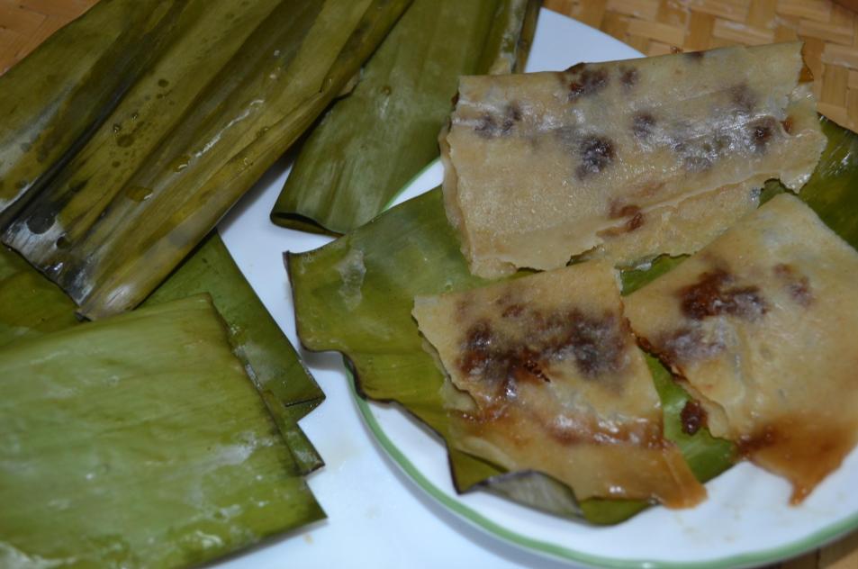 • Place little bit of sweet coconut paste on one side of the Ela Ada and fold them into half