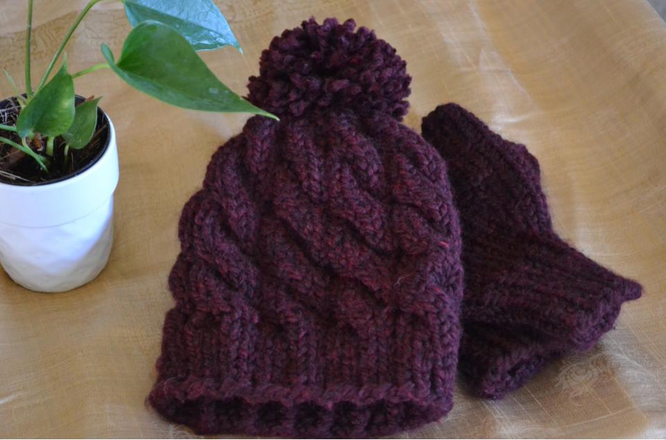 I was looking for a cable hat pattern and found this from Ravelry. This is another easy hat pattern to knit. If anyone wants to try a cable hat for first time, this will be the best option and it looks cute too. I just followed the instructions in the pattern, except using a different color yarn. I was making this hat for one of my friend’s daughter, so I made matching mittens too. Here is the pattern link. I used two skeins of lion brand wool ease thick & quick yarn and I used circular needle.