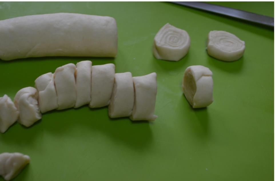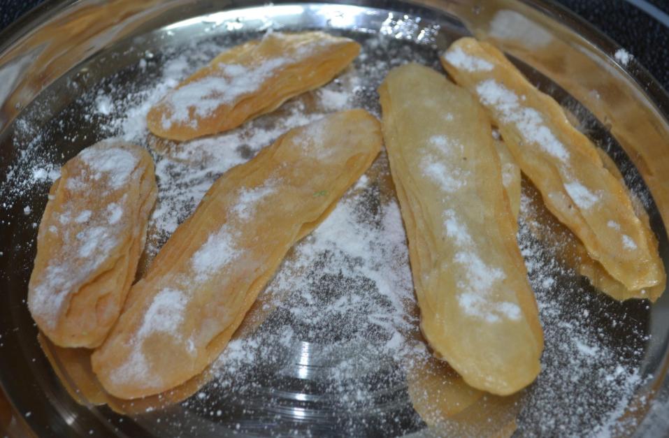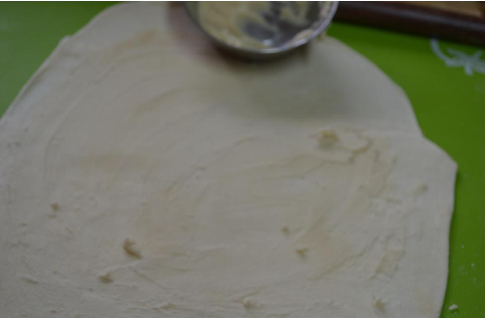 - Now take each piece and spread lengthwise (little tricky here, don’t spread into circles then you will not get the layers)