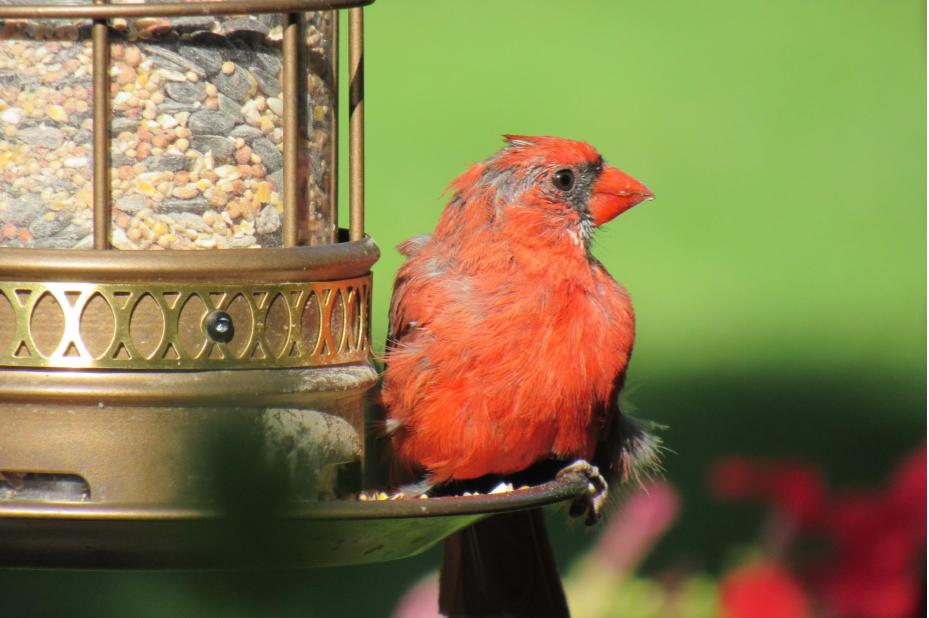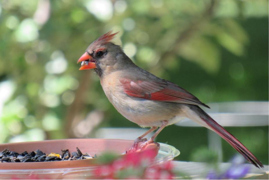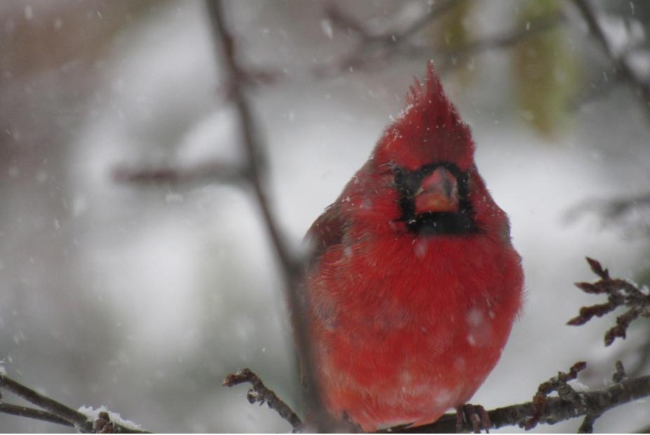 Cardinals are known as the beautiful birds and they visit our backyard everyday. They come and sit in a tree near the birdfeeders and it is so beautiful to watch. I always enjoy watching them through my kitchen window. Sometimes I have seen eight of them at a time, but they fight over territory and try chasing each other. I have attached a video of them eating sunflower seeds and enjoying the snow.
