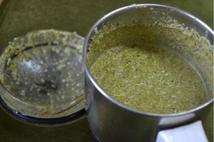 - Then add the ajwain leaves, grated coconut, green chilies and cumin seeds