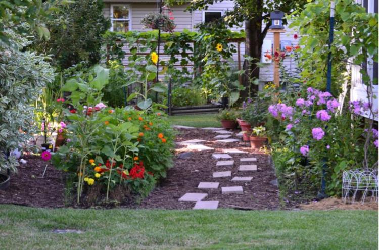 One of my long time wishes was to put a stepping stone path in our backyard. Last summer it finally happened! There are plenty of ways that you can transform your outdoor space into an inviting backyard. Even a beginner can install a stepping stone pathway as a DIY project over a weekend or two. You can turn a small amount of yard space into a beautiful backyard.