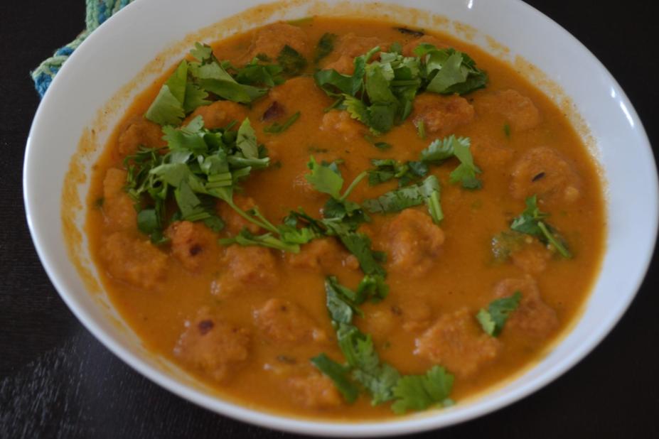 - Now add the fried pakodas and keep in heat for about three minutes, then turn off the stove and garnish with cilantro
