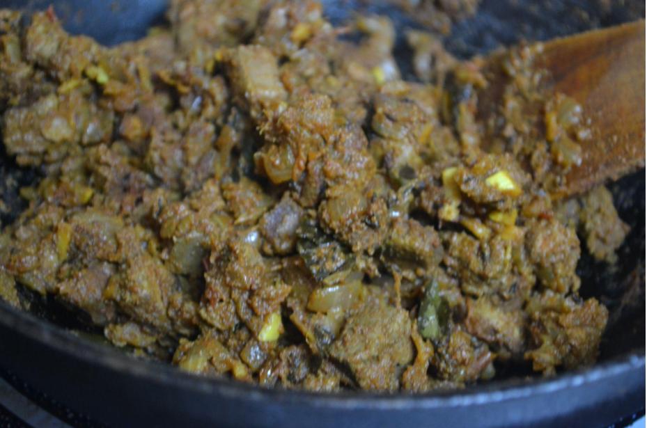 One of my close friend’s mom gave me this recipe and I make it once in a while. It only takes a little bit of time to make, but it always taste very good. This recipe is made with goat liver, which may not sound appealing at first, but give it a try and hopefully you’ll be pleasantly surprised. We usually get the goat liver from Indian grocery store. It goes very well with rice.