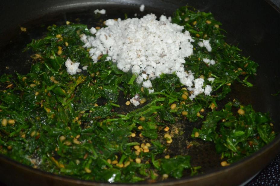 - Then add the grated coconut and continue to stir for couple of minutes and turn off the stove