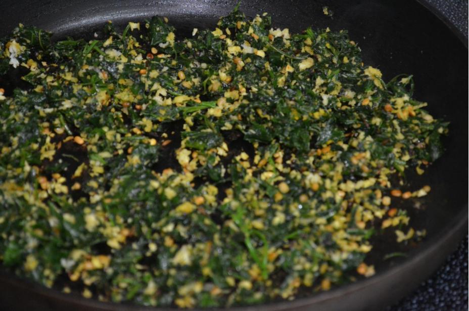 - Then add the chopped lamb’s quarter and stir it for couple of minutes