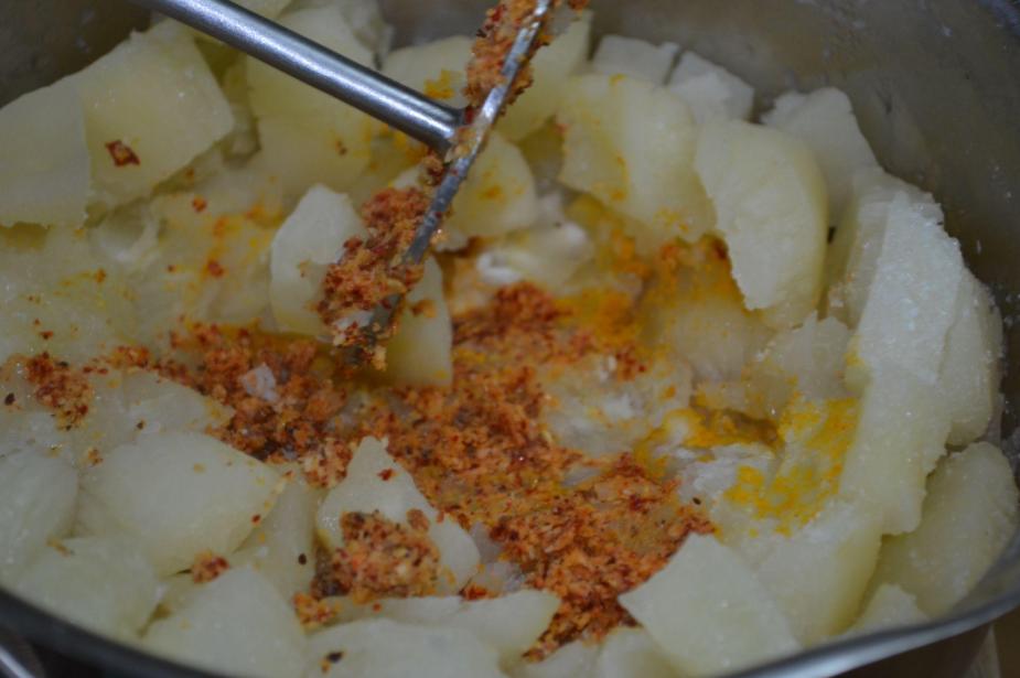 - Mash all together using a potato masher