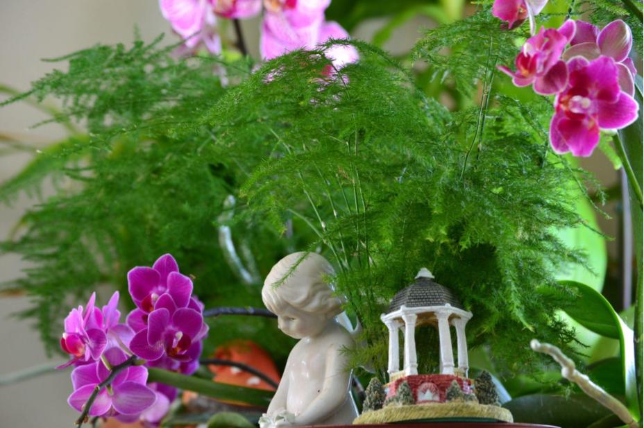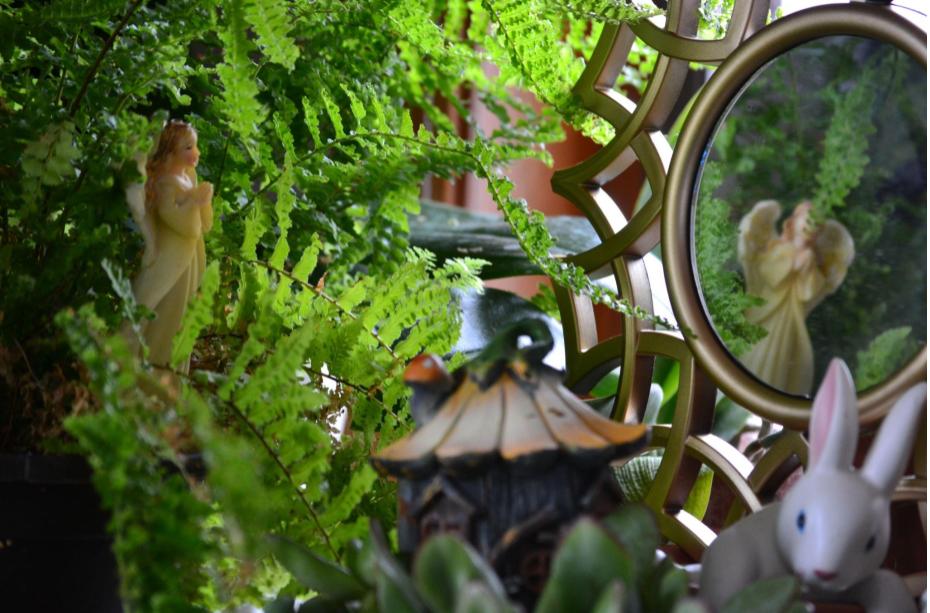 I like fairy gardens, so I make small fairy gardens all around our garden in the summer, but during the long Minnesotan winters I like to keep some fairy garden things inside and arrange these fairy gardens on our indoor plant shelves. I have made a different post just about my indoor plant and you can click on the link to see it here: indoor plant.