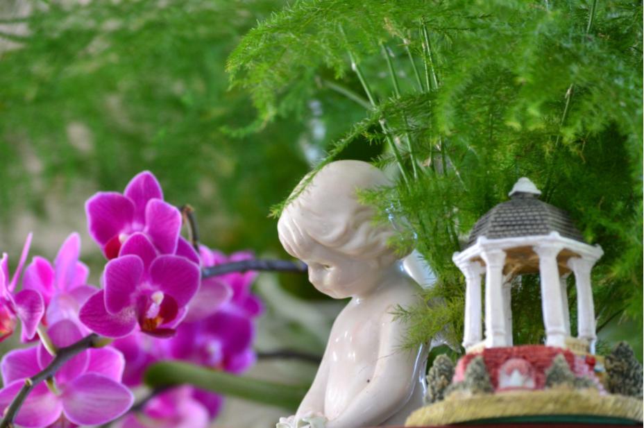 My winter fairy gardens are not really fairy gardens, but they maintain the feeling of a fairy garden. One thing I like about this kind of fairy garden is that it is not secured in a place, so anytime I want to, I can change the figures and rearrange the set up so there is always something new to look at. These little things make me happy, and I often rearrange the small thing (fairies and fairy houses) when I’m free around the house or when I get new additions to my plant shelf.