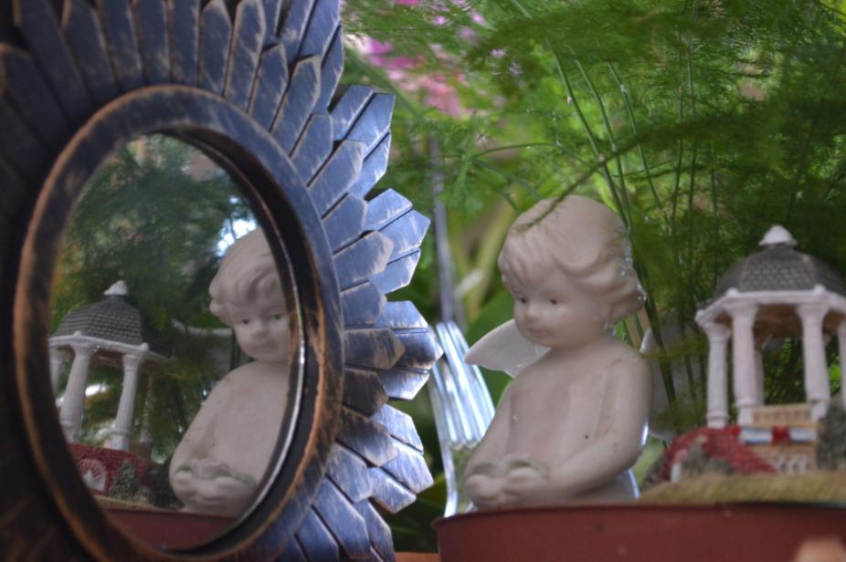 To make these fairy gardens, you don’t have to spend lots of money, most of these things can be bought in the dollar section; I even got the mirrors and the fairy houses from the dollar store. Some of the figurines are gifts and I think this is a nice way to display them. It is great to be able to keep up this hobby even when its below freezing outside!