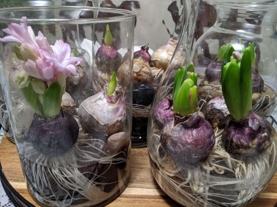 The hyacinth bulbs are growing everyday, having so much fun to watch them grow! Here is the last week update you can see the difference.