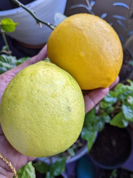 Last summer we bought three lemon plants, from one of those plants now we have picked up two lemons. Another plant has some tender lemons and some flowers. These plants are staying indoor for about seven months, so happy to have big lemons from our indoor lemon plant. I made lemon theeyal using these lemons and going to share with our friends.