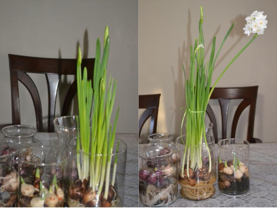 After twelve days the plant bulbs are grown a lot, especially the paperwhites started to bloom. Here are the pictures and here is the link to my first post.