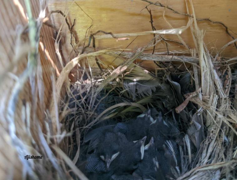 Finally, the house wren made a nest. I had lots of fun watching her all the time. She laid eight eggs and all of them hatched. After hatching, she was so busy feeding them, going around and bringing some small insects to her babies. Whenever she brought food, they all made a happy noise, and other times they were so quiet.