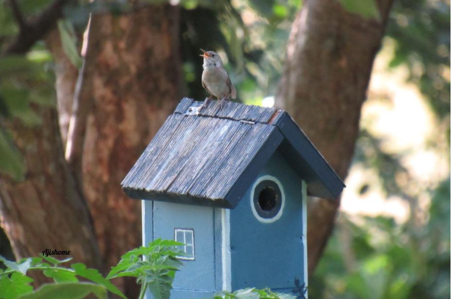 I always wanted to put a birdhouse in our backyard. Finally, last summer, we bought a birdhouse and one of my daughters painted the birdhouse in blue color. I asked her why she chose blue, and she said because our house is blue. This is the silly story about the birdhouse color. Then we put the birdhouse near our vegetable garden, and I had been waiting to see if any birds are using it. After some time, I saw a chickadee and a house wren were going in and out a few times, but the chickadee did not make her nest.