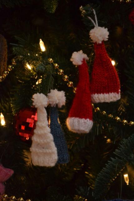 This is a little cute mini hat ornament made for our Christmas tree. Here is the link to the pattern.