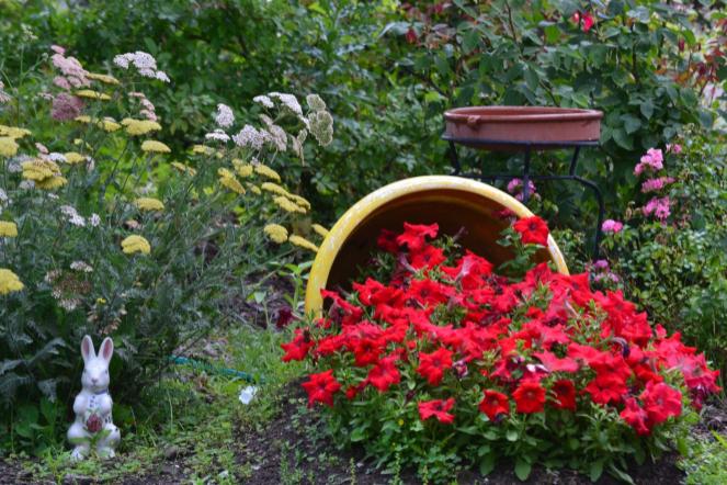 As I started thinking about the 2025 garden season; the first thing that comes to mind is the spilled flower pot, a delightful centerpiece that captures the eye. What colors it will feature is still a mystery, as I have not decided yet, but I still have lots of time to ponder my options. Every year, we make a spilled flower pot in our garden, embracing the joy of creativity, and last year, we chose vibrant red and cheerful yellow petunias, which immediately brightened up our outdoor space. One time, an adventurous rabbit discovered our petunias and devoured most of them. However, much to our delight, they returned beautifully, flourishing even more than before, a testament to nature’s resilience and ability to bounce back from adversity. It’s fascinating how plants can overcome challenges; their recovery was a gentle reminder of persistence.